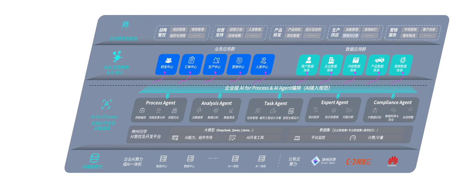EBpay问学智车解决方案是一套基于AI技术的汽车行业智能化系统,,覆盖从底层算力到顶层AI应用的全栈方案。。。方案由算力层、、、模型层和应用层组成:算力层,,,方案支持多种一体机配置,,具备云端灵活部署、、多云适配以及动态优化计算资源的能力;模型层,,,,EBpay问学平台版提供了企业级AI应用一站式构建与管理平台,,支持基于后训练强化技术的汽车企业专属模型的训练、、评测和运营;应用层,,,,EBpay问学DeepSeek版提供包括超级员工、、、、智能招采、、智能营销、、、智能客服、、、AI for BI等一系列解决方案,,可助力汽车行业实现数字化转型,,让管理更智能、、、响应更敏捷。。