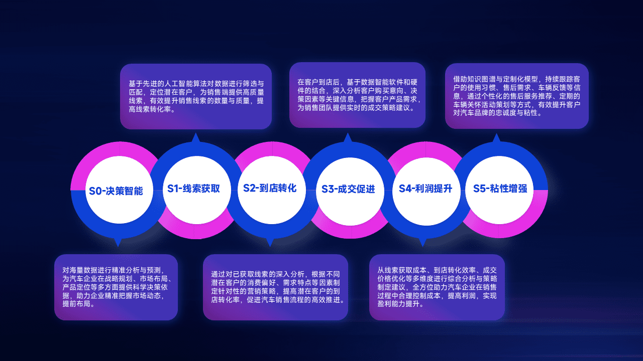 通过拓宽潜在客户来源、、、、优化线索分配并提高到店转化率,,以增强销售效率。。。同时,,利用线索数据不断优化分析模型,,,有效提升转化率,,扩大营销影响力。。。